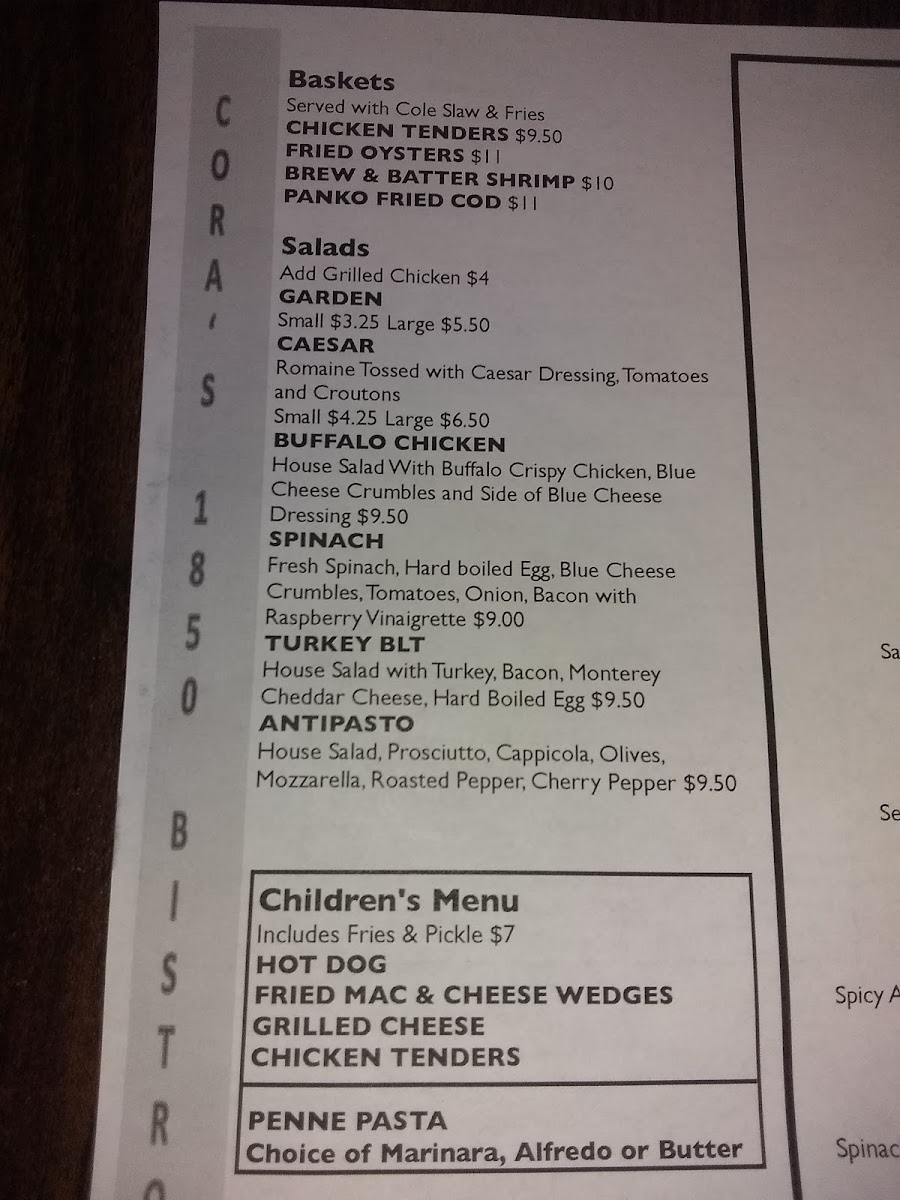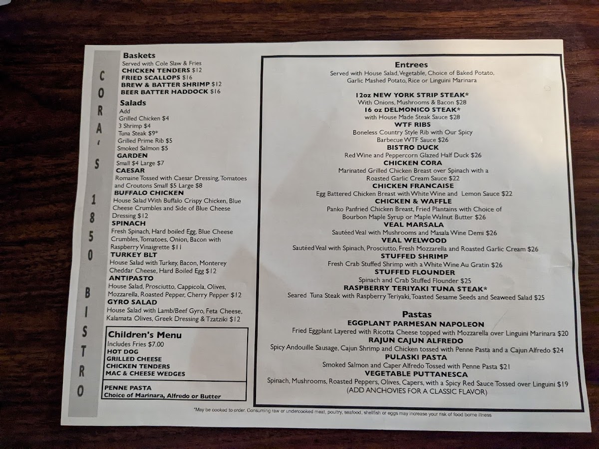 Cora's 1850 Bistro Menu (2025 Update)